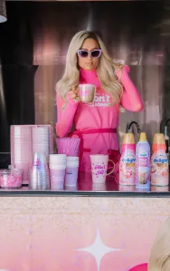 Image Credit: Loamis Media/International Delight Paris Hilton promotes her limited-edition International Delight coffee creamers and cold foam creamer in Santa Monica on March 12.